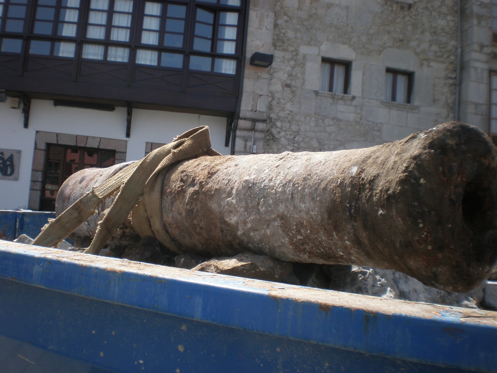 Fueran aquellos primeros cañones o los que les sustituyeron, lo que tenemos constancia es de que un cañón, el que actualmente se encuentra depositado en el “Campu del Gatu”, salió a la luz durante las obras del puerto, concretamente al desmantelarse la cabezona.