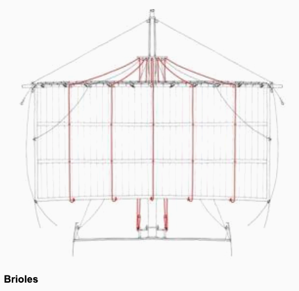 Brioles: Cabos para cerrar o recoger las relingas de las velas de cruz.