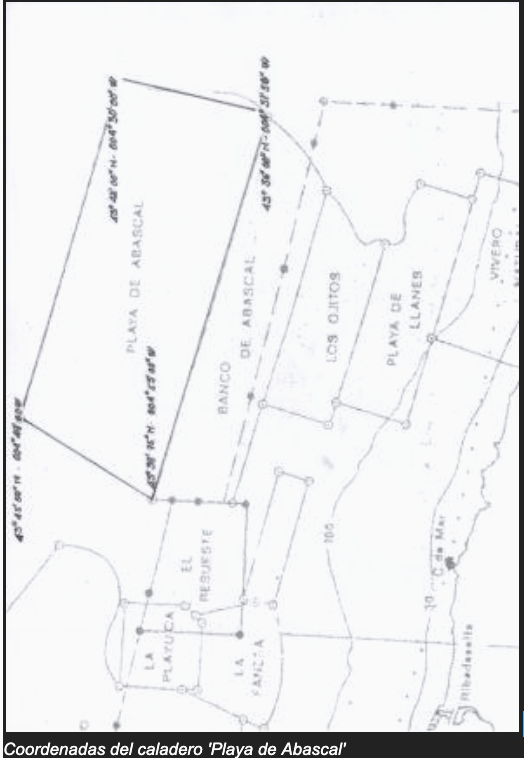 Se refiere el caladero “Playa de Abascal”, como una figura rectangular, cuyas coordenadas serian: