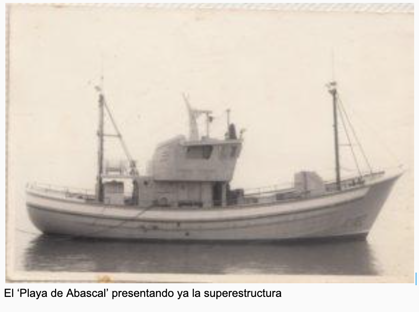 No vamos a relatar aquí, las lanchas y barcos de los que “Tisto” fue armador, patrón y tripulante, como fueron el “Corazón de María”, la “Sisina” y la “Virgen Guía”, todas ellas en compaña y buena armonía con su inseparable amigo y compañero de aventuras, Antonio Batalla Díaz (“Machi”), entre otras, pero al que si nos vamos a referir, es a ese barco que fue el que al final portaría el nombre de este caladero que él también conocía: el “Playa de Abascal”.