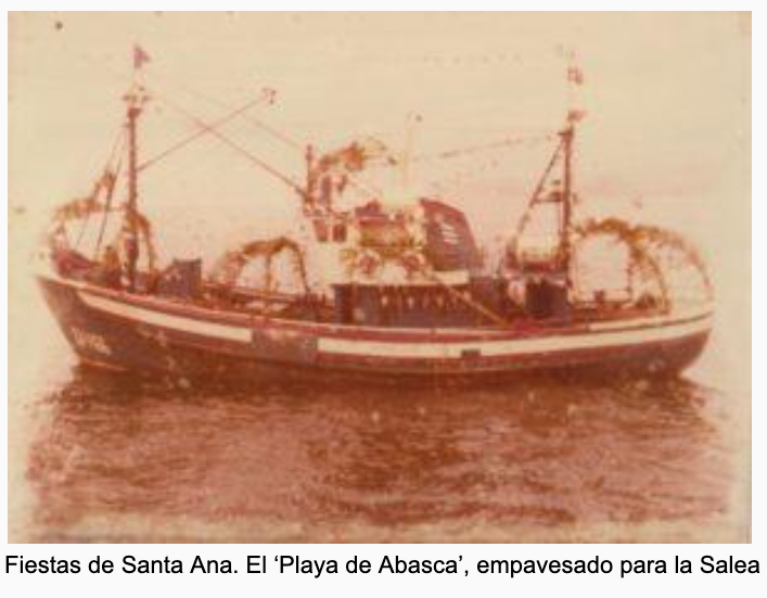 En una tercera vemos a Francisco Herrero Melijosa (“Tisto”), a bordo de su barco, atracado en Ribadesella, junto a su esposa Paquita González Sordo, y por último el ‘Playa de Abascal” magníficamente empavesado para participar en La Salea, durante las fiestas de Santa Ana en Llanes. (1976).