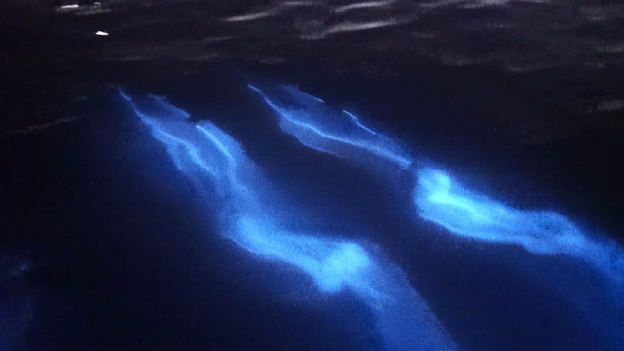 En esa negra Mar, aparecía de pronto lo que podríamos definir como una efímera serpiente luminosa, que no dejaba de ser el rastro bioluminiscente que dejaba a su paso algún pez, que, asustado por la embarcación, se separaba rápidamente de ella buscando aguas más profundas.