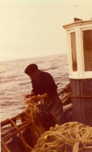 Se empiezan a levantar los aparejos, y por ganas de ayudar, les pregunto donde me pongo, y sin dudarlo me colocan tras el “alador”, para recoger el aparejo e ir estibándolo a un lado hacia proa, ya que al parecer era el puesto más cómodo, pues según decían todo trabajo lo hacía la máquina. ¡Santa inocencia!