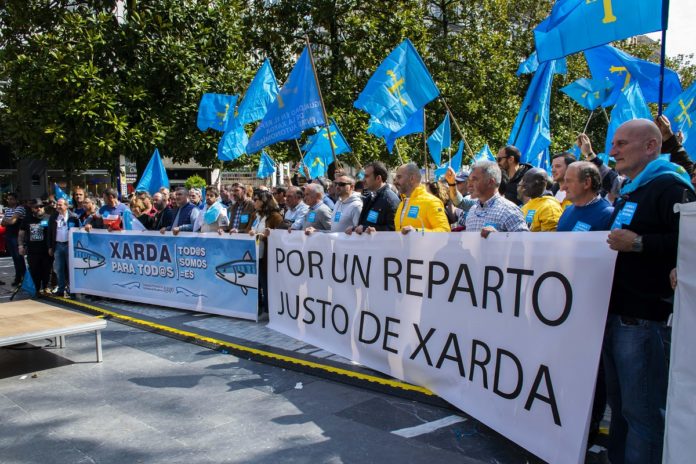 En la mañana del sábado, se dieron cita en el Paseo de los Álamos de Oviedo las Cofradías de Pescadores de Asturias y Galicia para reivindicar un reparto justo y equilibrado de las cuotas de Xarda.