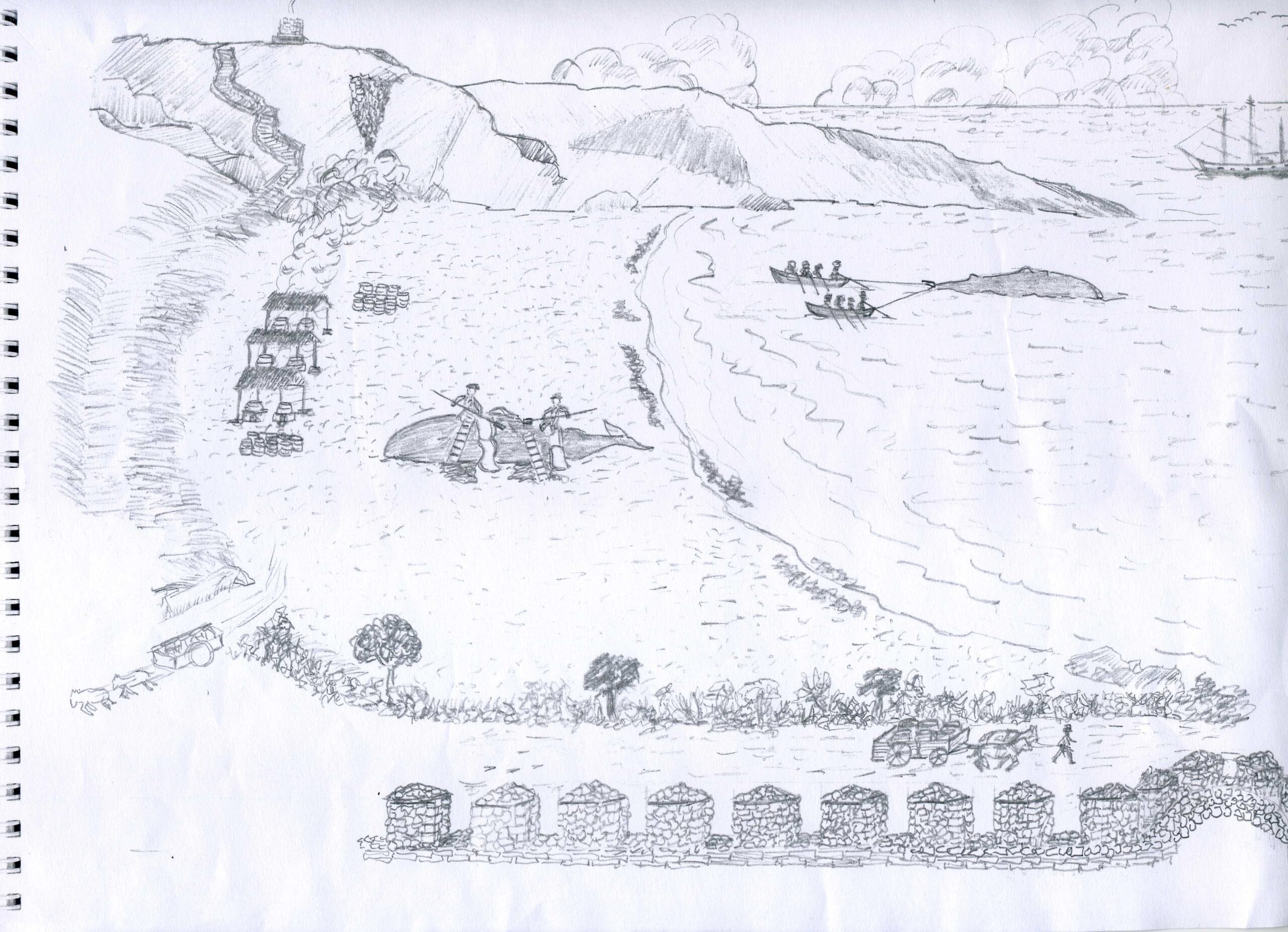 Otro ingreso importante era el resultado de la caza de la ballena, tras la extracción la grasa del cetáceo que igualmente pescaban sus marinos, y que elaboraban, en un principio calderos situados sobre el mismo sable de la playa de “Estacones”, para posteriormente hacerlo en “La casa de la ballena “, que según apunte de Cayetano Rubín de Celis, estaba situada en el barrio de la Moria, y cuya edificación, tenía entrada tanto desde la calle, en su acceso Sur, como directamente desde la playa en su acceso norte.
