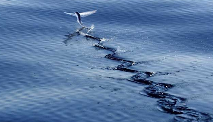 Su nombre exocétido proviene del griego “exo-koitos” («yacer fuera»), en el sentido de «dormir bajo las estrellas», por el hecho de que no es raro que queden varados en las cubiertas de los barcos al salir del agua por las noches. Yo mismo me he encontrado varias veces con este, “pez volador mediterráneo” (también llamado como “juriola”), sobre todo navegando por las inmediaciones de las Baleares. La constelación “Volans” hace referencia a este pez, y uno de los géneros, el “Hirundichthys”, significa «pez golondrina» en griego.