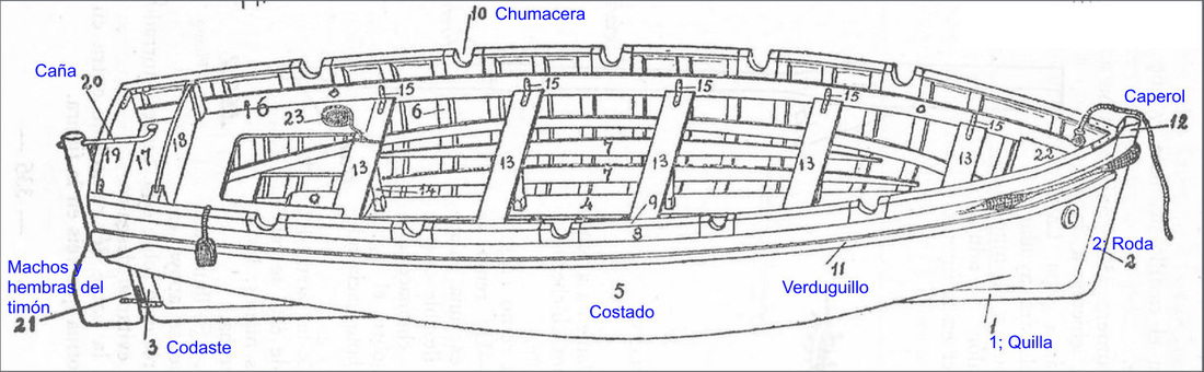 Aunque es solamente un humilde auxiliar de los pesqueros “grandones”, no por ello deja el bote de estar compuesto por una serie de piezas, que, por su propio nombre, debemos aprender de memoria si queremos conocer mejor esta pequeña pero útil embarcación.