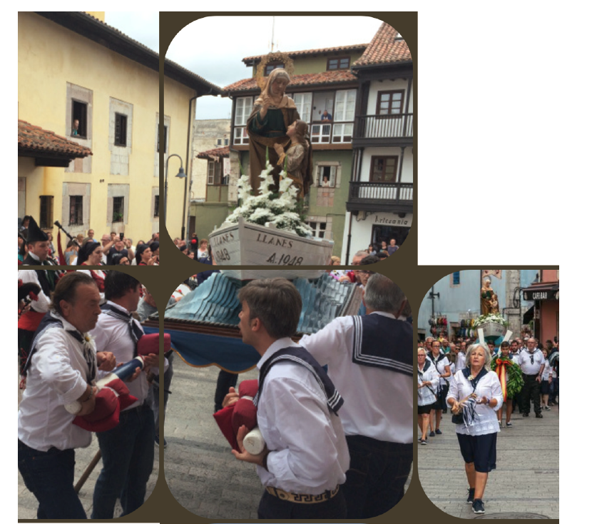 - • Fiestas de Santa Ana: La procesión de la Santa por las calles de Llanes, acompañada de marineros, marineras y devotos de la santa, constituye un espectáculo arraigado en la tradición, al que se suma la costumbre de la «Salea por el Mar», atrayendo multitudes y convirtiéndose en una celebración única que perdura en la villa.